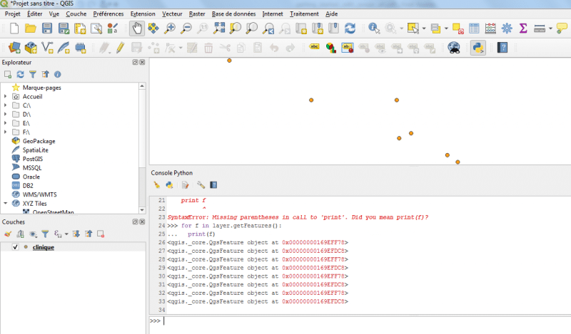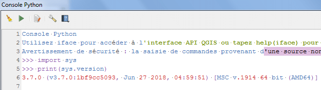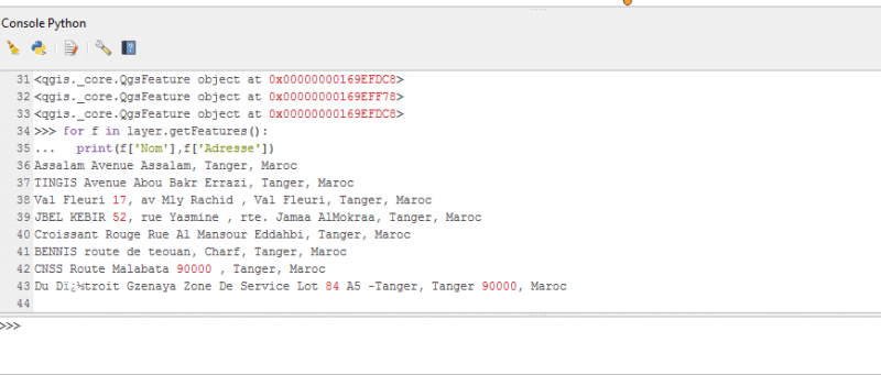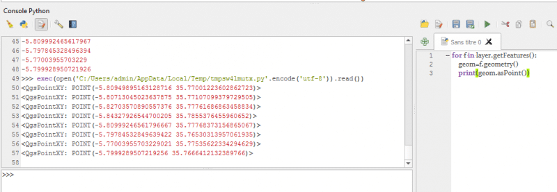 Le QGIS possède une interface console pour exécuter le code python et affiche le résultat de code.